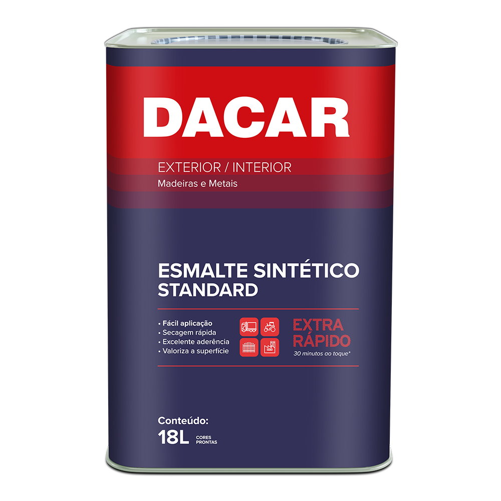 El Esmalte Sintético Estándar tiene una formulación que garantiza una excelente protección y facilita la limpieza. Proporciona un gran acabado y buena resistencia a la intemperie, con fácil aplicación, alto poder de cobertura y rendimiento, además de un secado rápido. Disponible en acabado brillante, resalta con sofisticación las características de la superficie pintada, ofreciendo una alta durabilidad y protección.